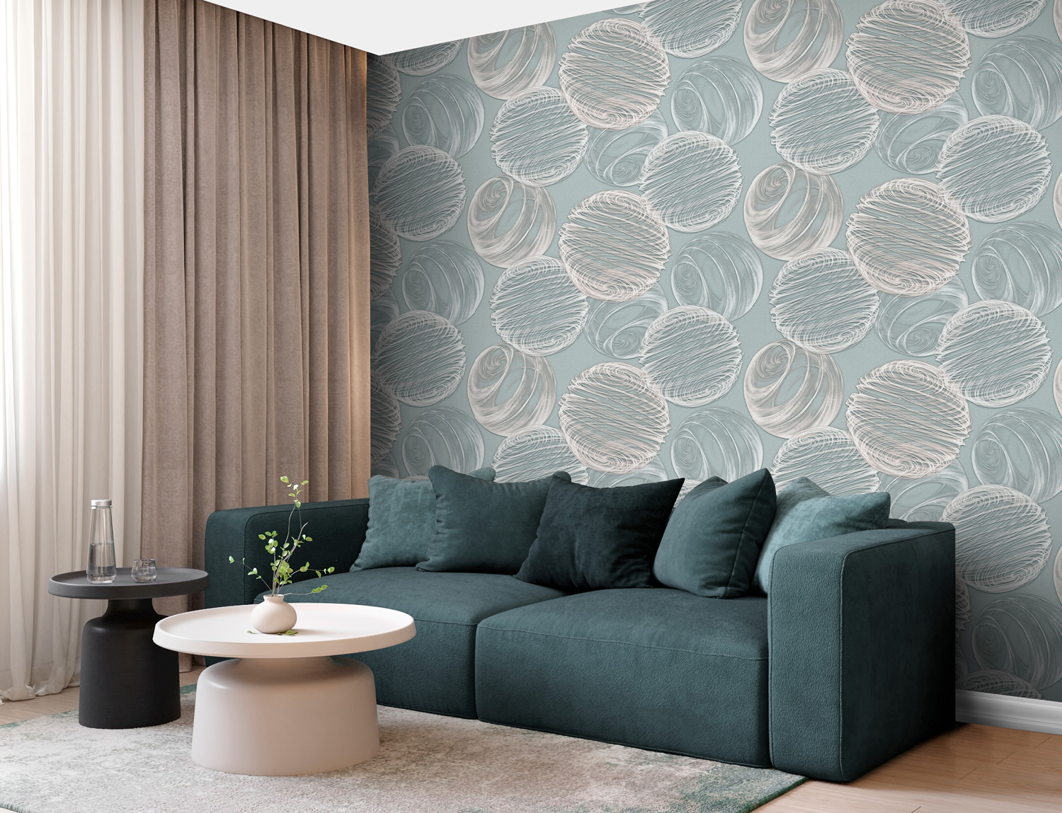 Вспомните, как жидкий сахар стекает с ложки, образуя причудливые округлые формы — то застывая каплей, то вытягиваясь в тончайшую нить. Коллекция КАРАМЕЛЬ запечатлела это мгновение: на полотнах переплетаются сферические силуэты, словно нарисованные горячей сладкой массой. Они пересекаются в свободном, почти хаотичном порядке, создавая композицию, которая притягивает взгляд.